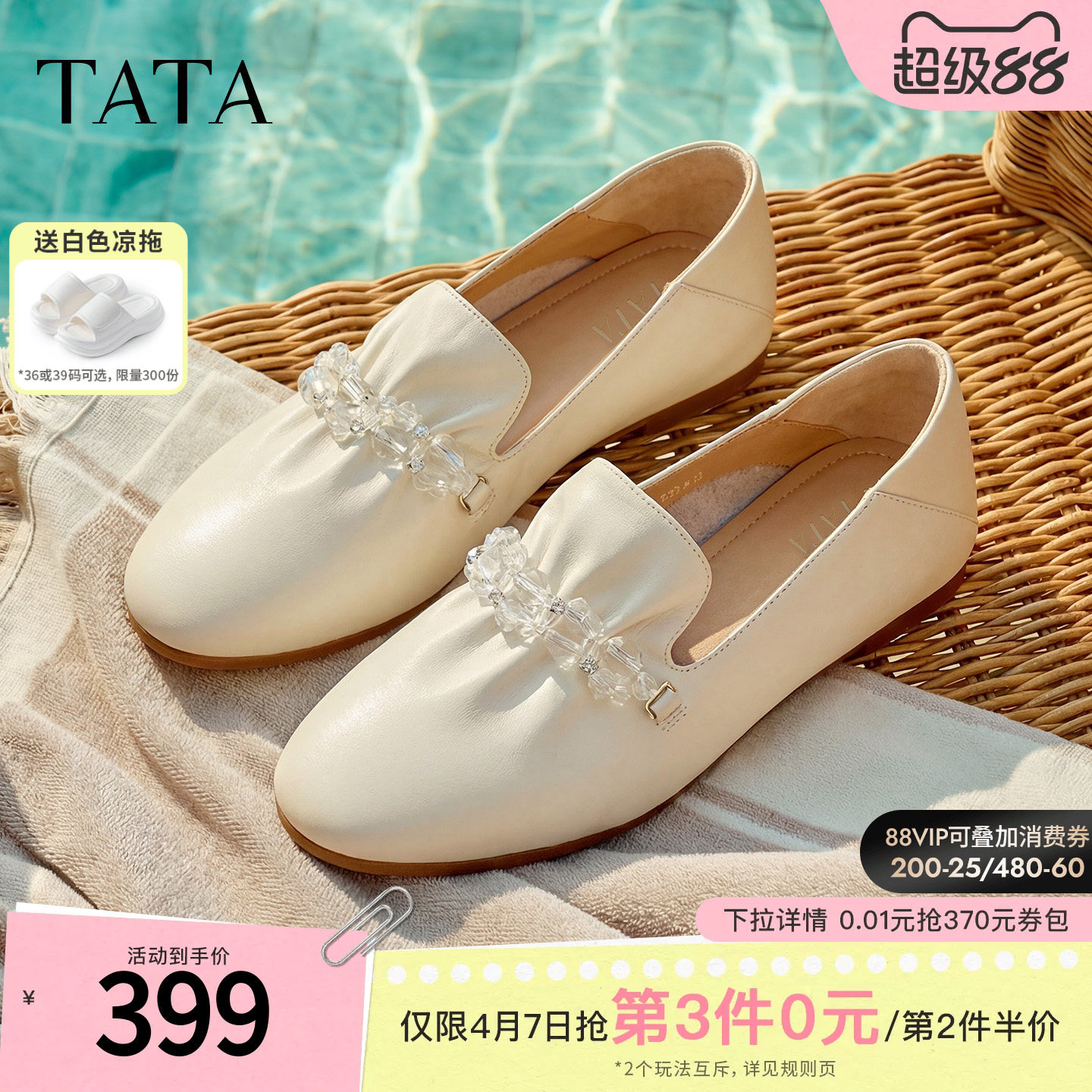 TATA他她平底乐福鞋女软底真皮白色小皮鞋女单鞋2026新款YZU03AA6