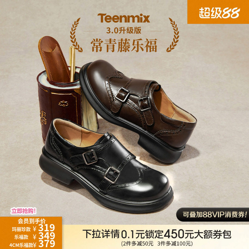 天美意布洛克札记厚底英伦常青藤乐福鞋单鞋女软底小皮鞋2026新款