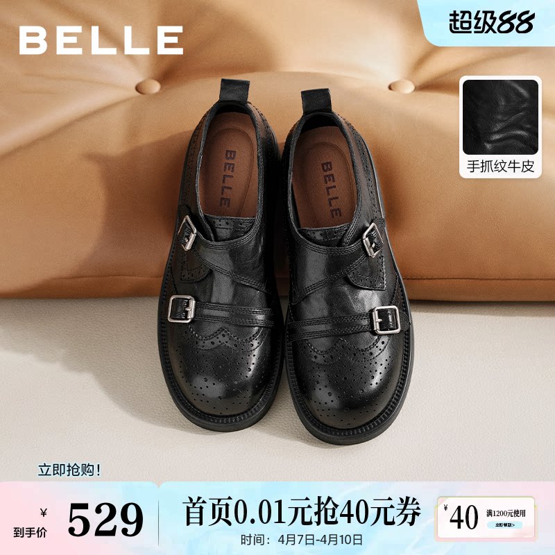 周雨彤同款百丽时光画报厚底增高乐福单鞋女布洛克孟克小皮鞋子预