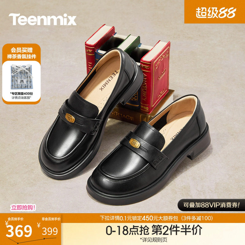 天美意芝士分子厚底休闲英伦乐福鞋复古单鞋女新款一脚蹬小皮鞋子