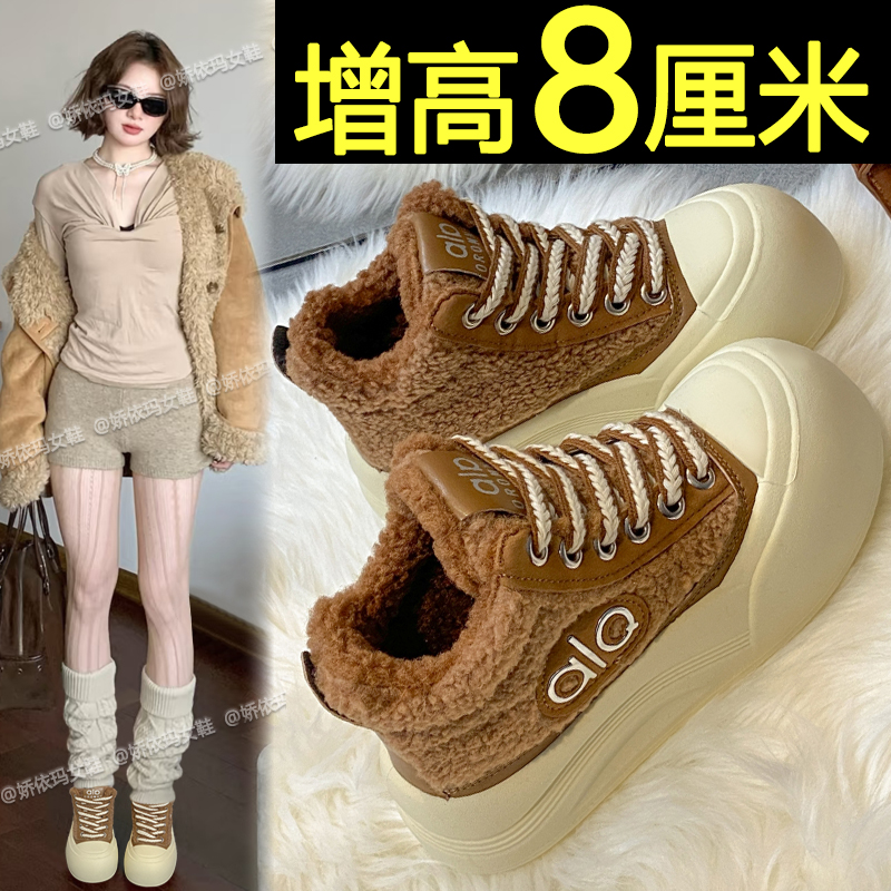 内增高加绒高帮鞋女款2025秋冬季新款保暖加厚毛毛棉鞋厚底休闲鞋
