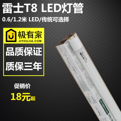 雷士照明led灯管T8日光灯支架灯灯管0.6米8W1.2米16W高亮单led管