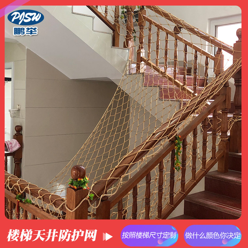 彩色楼梯防护网儿童安全网尼龙绳网装饰家用幼儿园阳台围栏防坠网