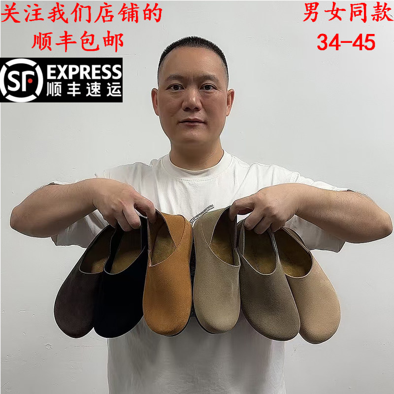 莞产全牛皮,row风穆勒鞋春季新款男女复古厚底勃肯懒人真皮单鞋