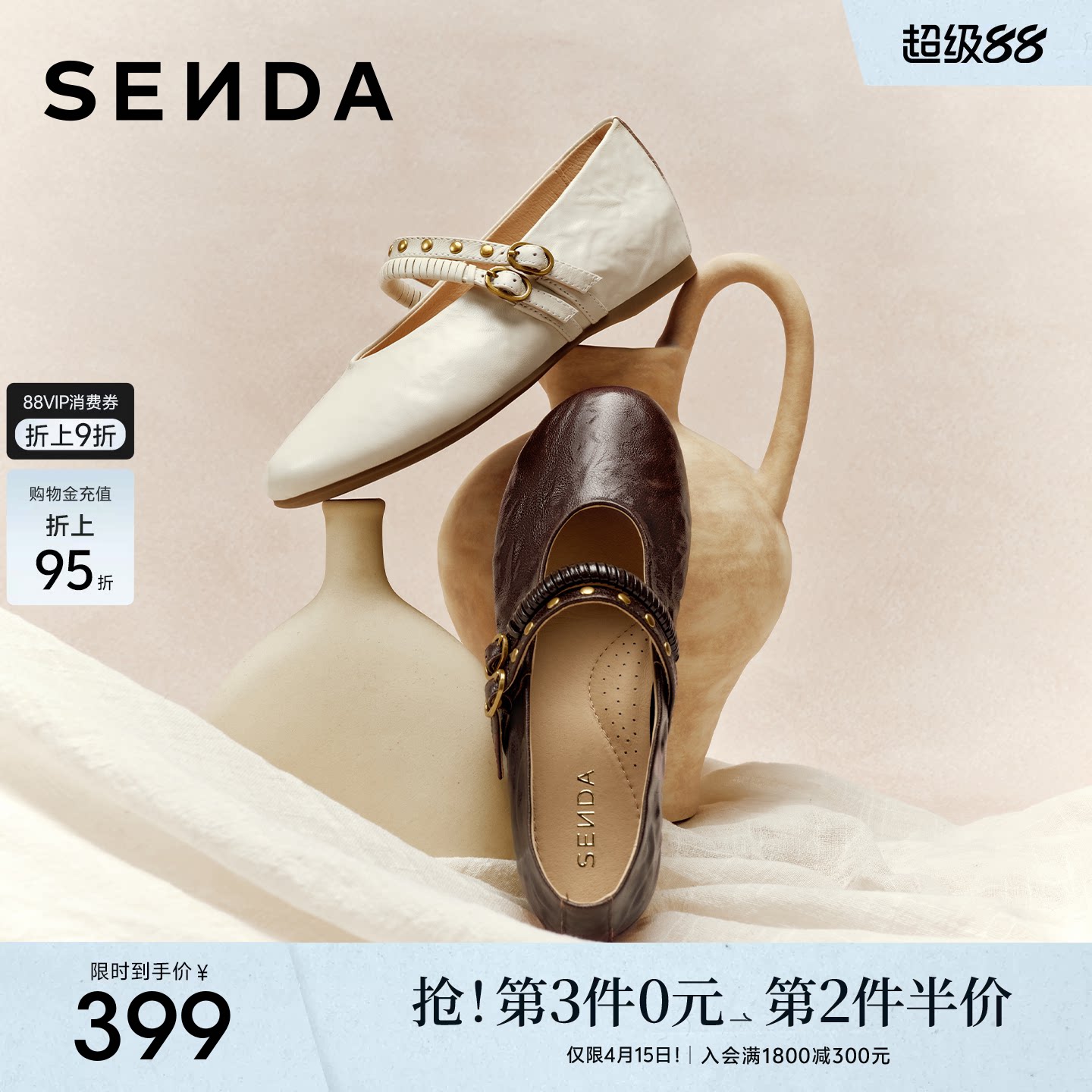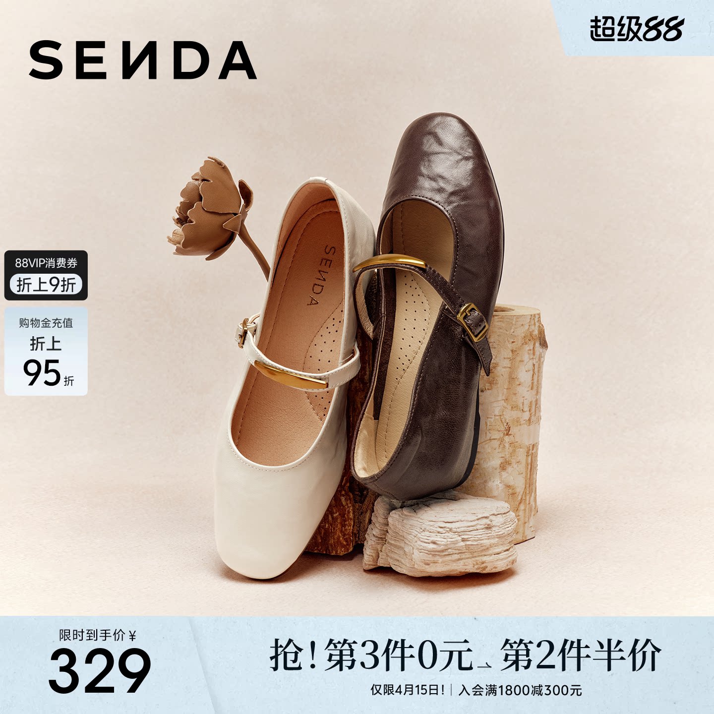 森达玛丽珍皮鞋软底羊皮内增高厚底单鞋真皮春新商场同款平底女鞋