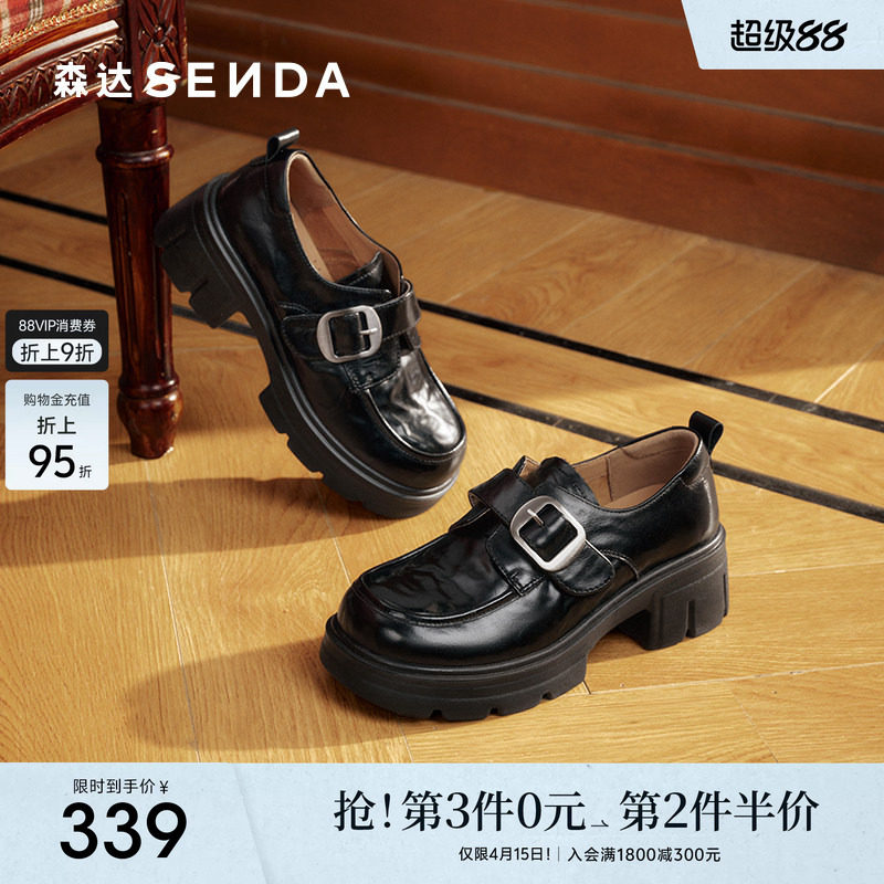 李墨之同款森达牛津日记厚底乐福鞋女鞋春季新款真皮羊皮单鞋皮鞋