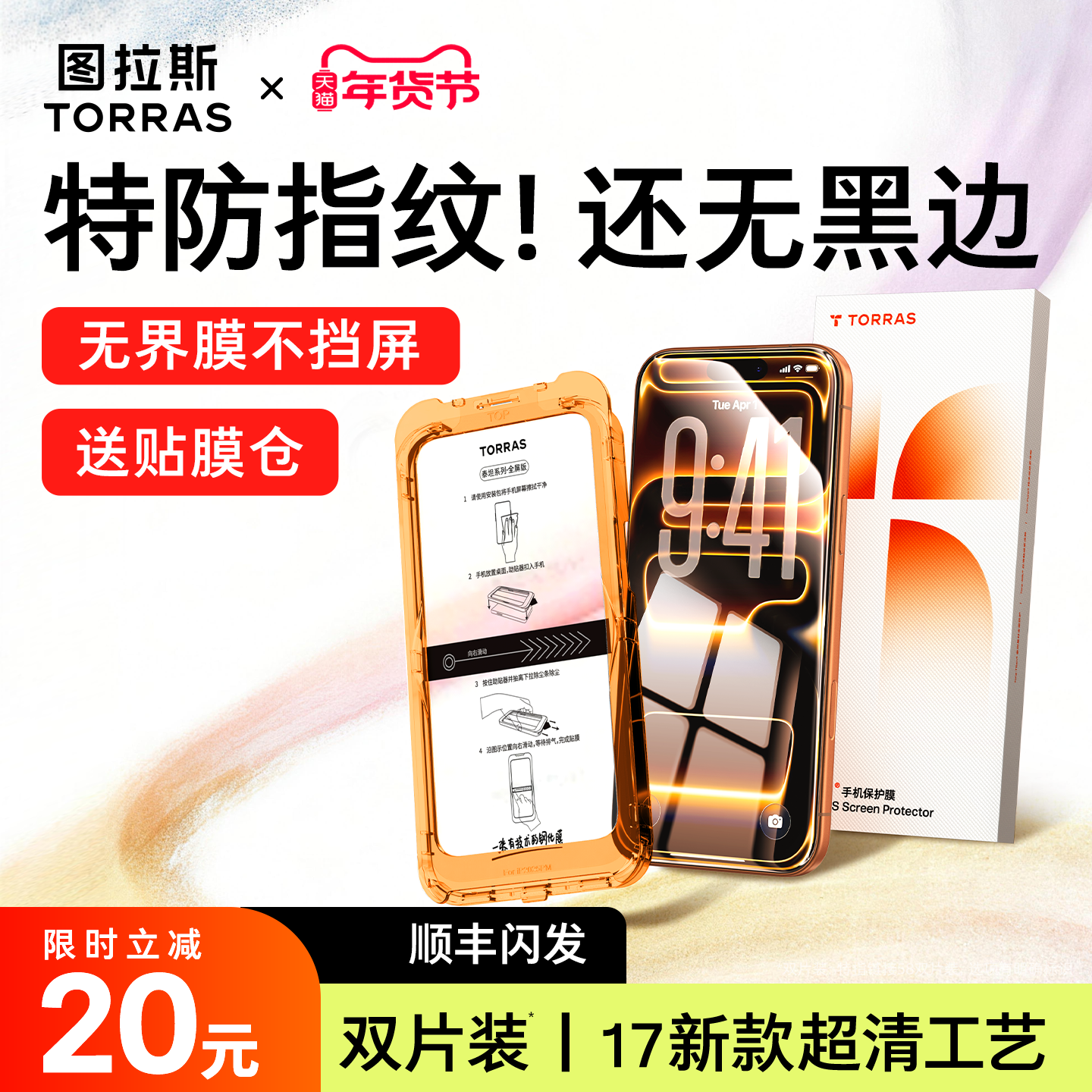 图拉斯无界膜适用苹果17钢化膜iPhone16ProMax手机15贴膜14Pro屏幕13无黑边12防指纹14官pm保护11新款ip超薄x