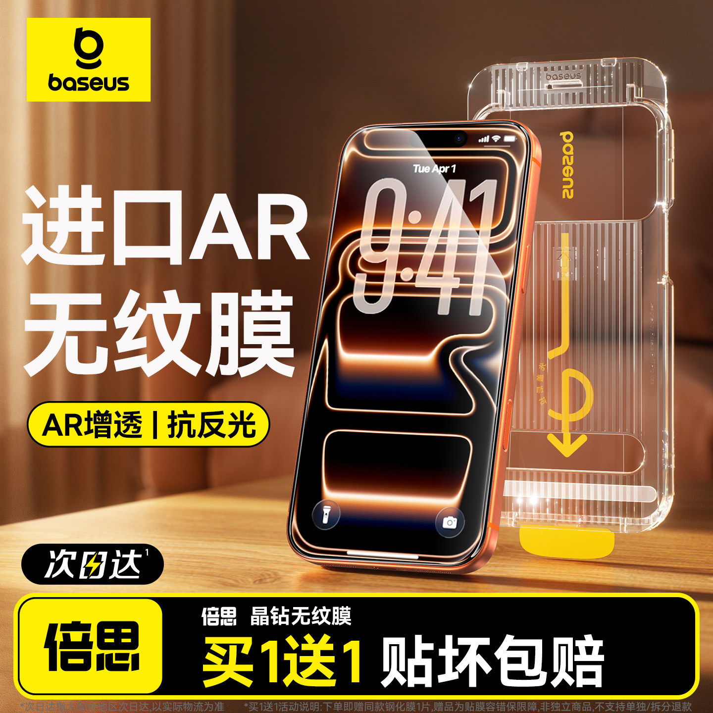 倍思康宁膜AR抗反射适用苹果17ProMax钢化膜iPhone17无尘仓16Pro手机贴膜ip15全屏14高清13防摔12新款Air保护