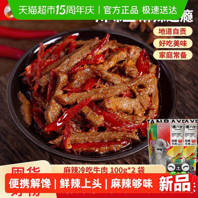 谭八爷麻辣冷吃牛肉四川特产牛肉干即食小吃网红零食卤味熟食真空