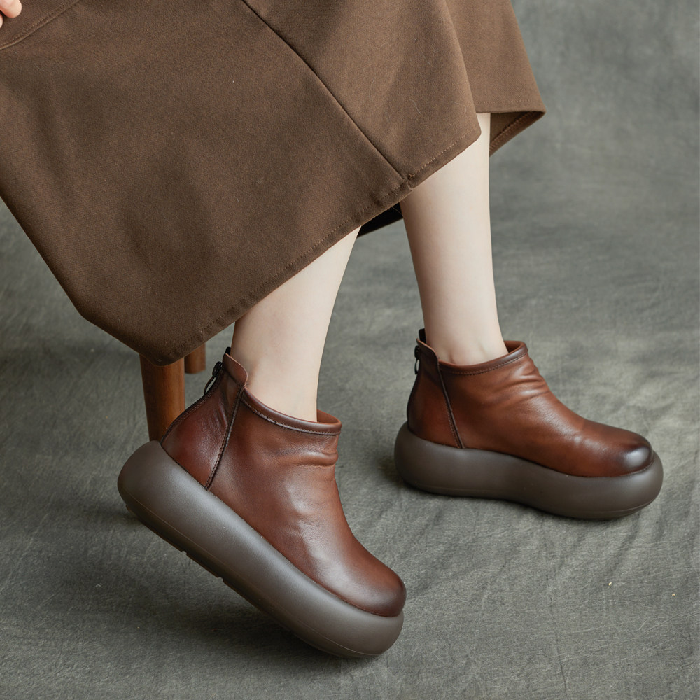 厚底坡跟短靴女真皮[第10名]