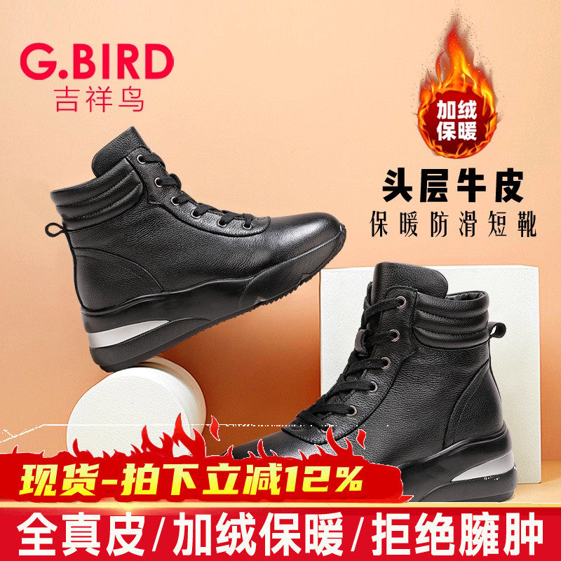 【保暖靴】吉祥鸟真皮冬季靴子女休闲加绒短靴厚底坡跟百搭WG6208