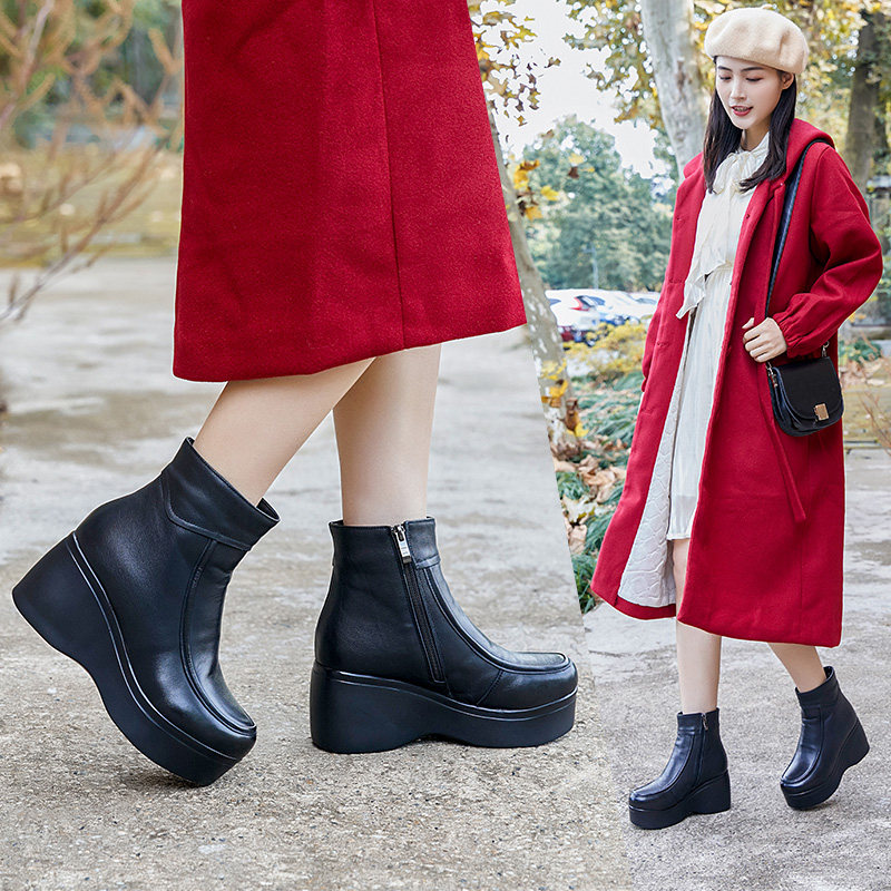 厚底坡跟短靴女真皮排行榜