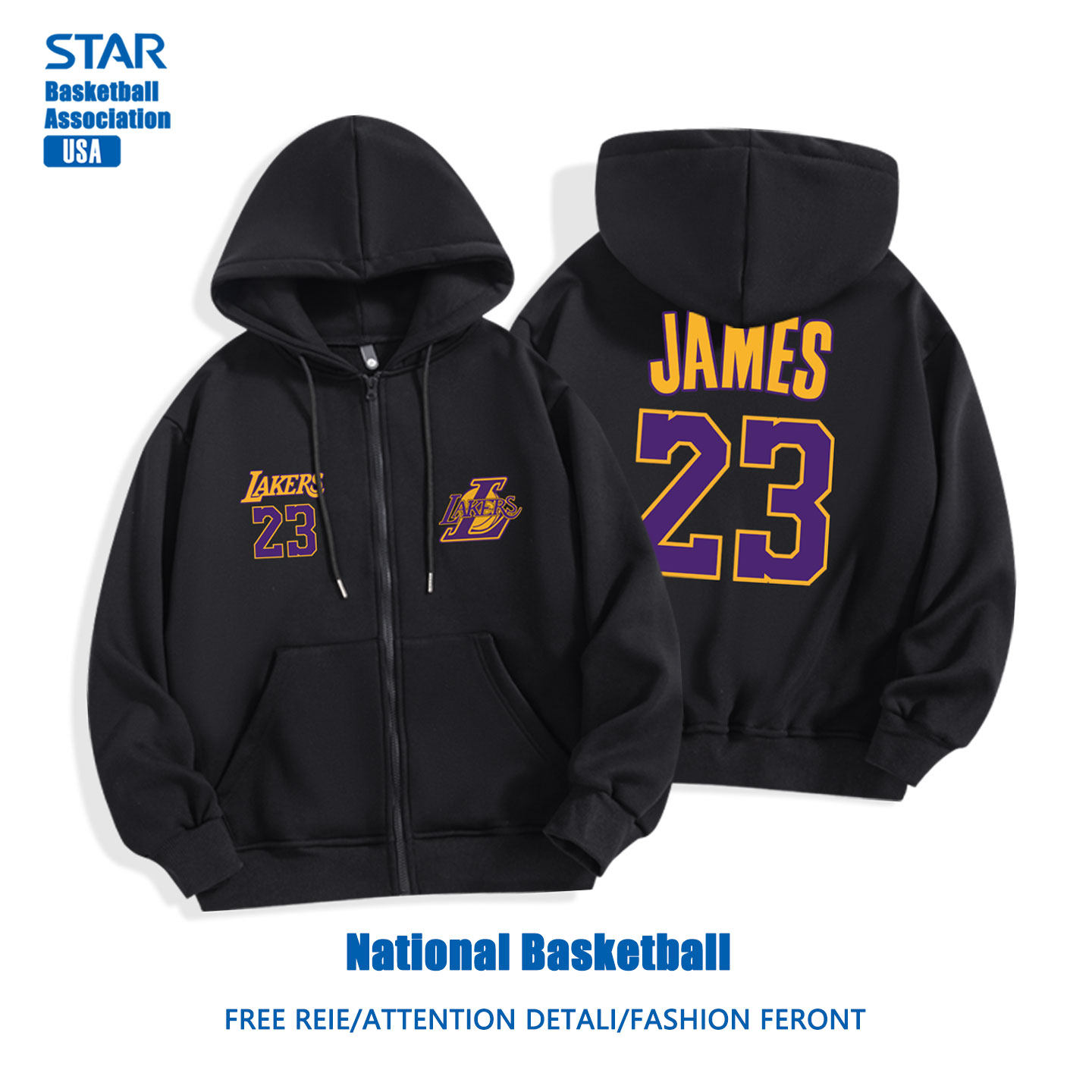 詹姆斯欧文外套男连帽拉链卫衣冬加绒加厚库里科比篮球运动开衫服
