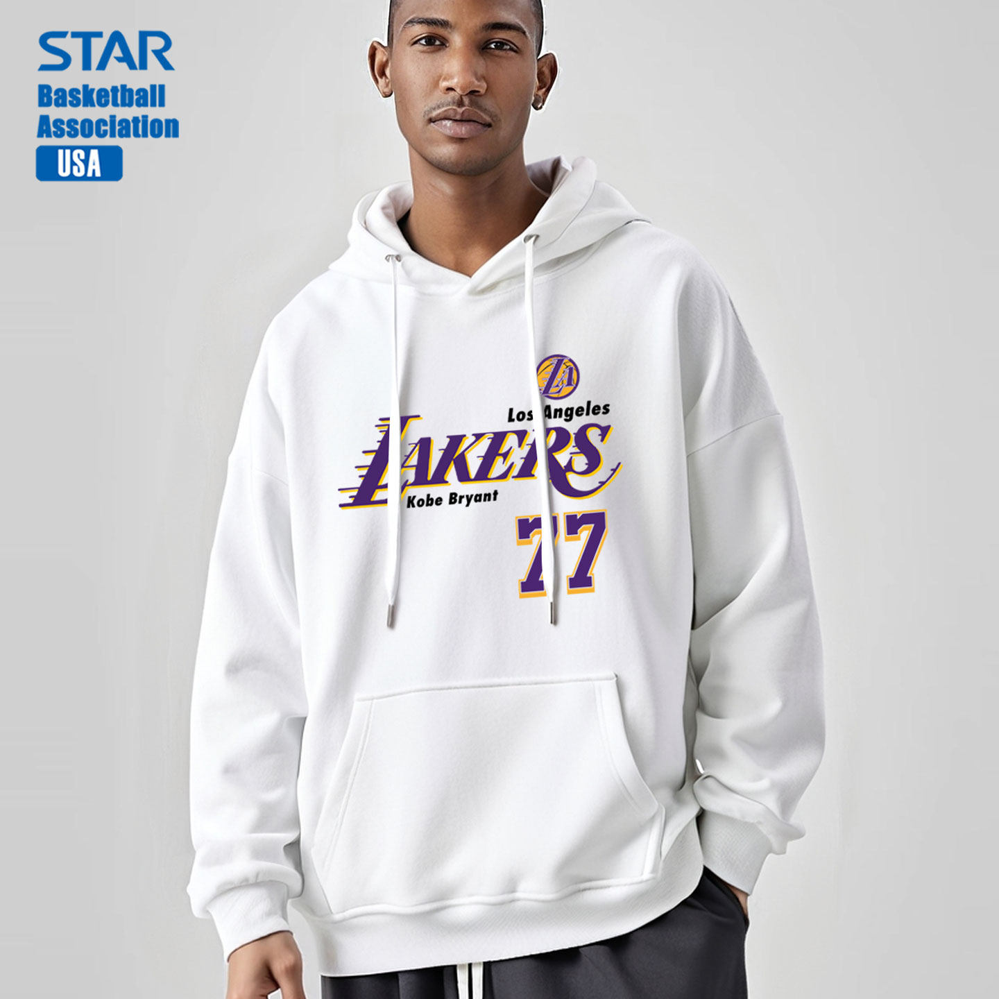 美式宽松潮牌篮球运动服上衣秋冬加绒湖人科比连帽卫衣男款青少年