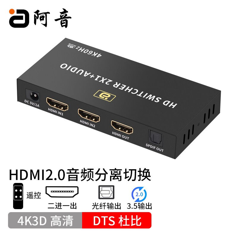 阿音HDMI2.0音频切换器4K高清音频分离2进1出二进一出分配器5.1声