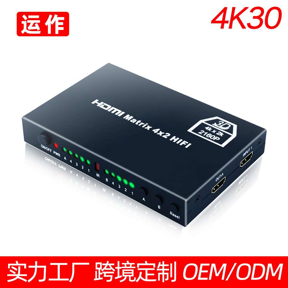 HDMI矩阵四进二出4X2matrix迷你铁壳4K切换分配器音频分离回传器