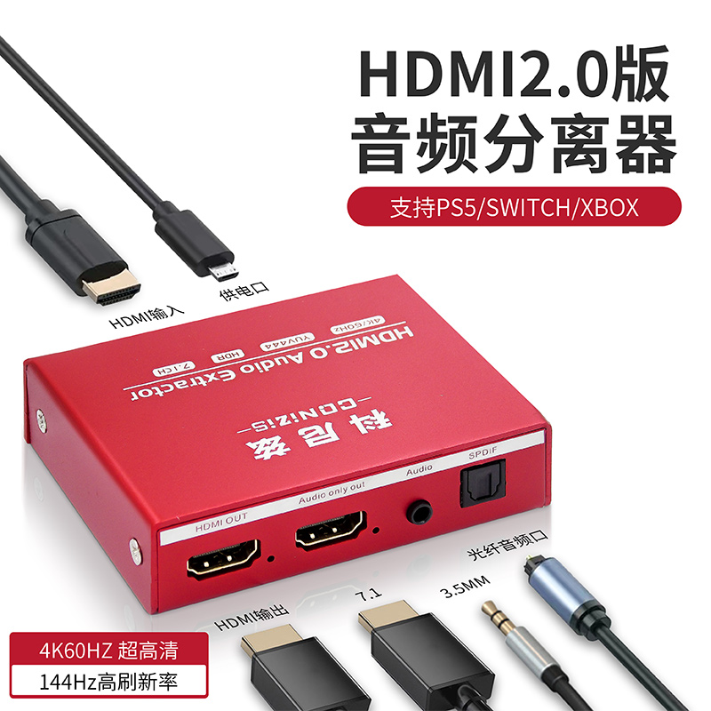 hdmi4K60帧音频分离器 7.1光纤spdif/3.5接口转换器多功能高清2.0