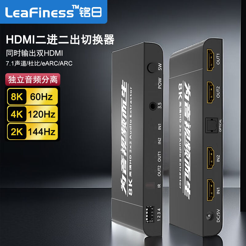 铭日hdmi音频分离器2进2出HDMI分配器2进2出分频切换器8K@60HZ两