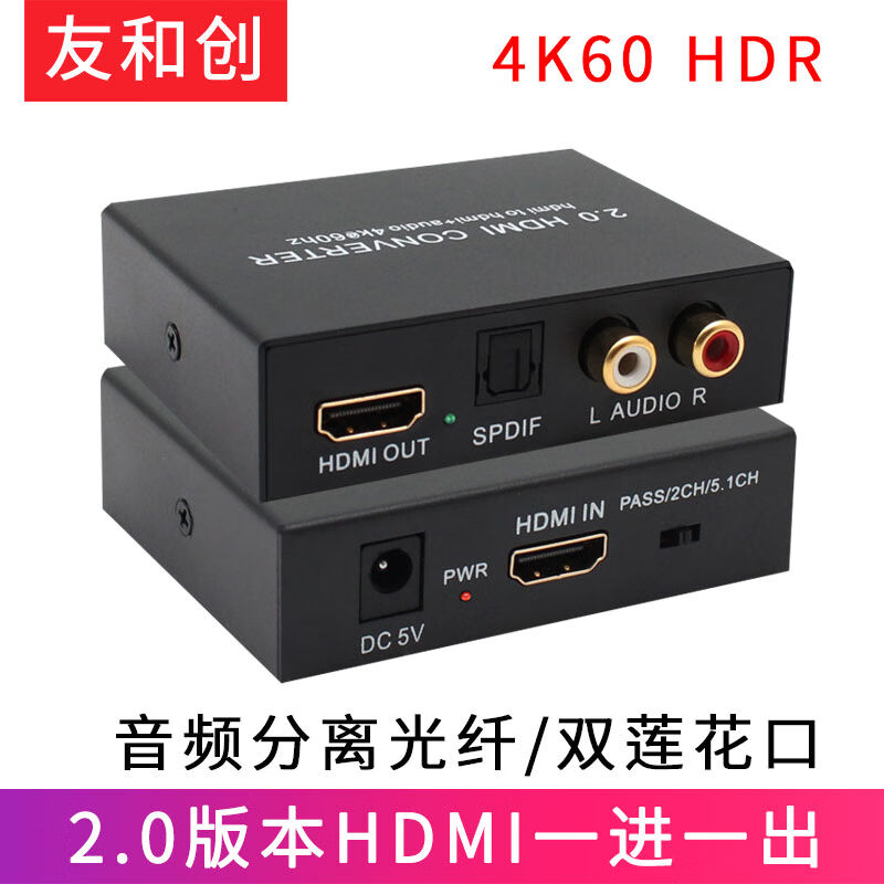 友和创2.0HDMI音频分离器4K60数字高清hdmi转音频光纤双莲花L/R电