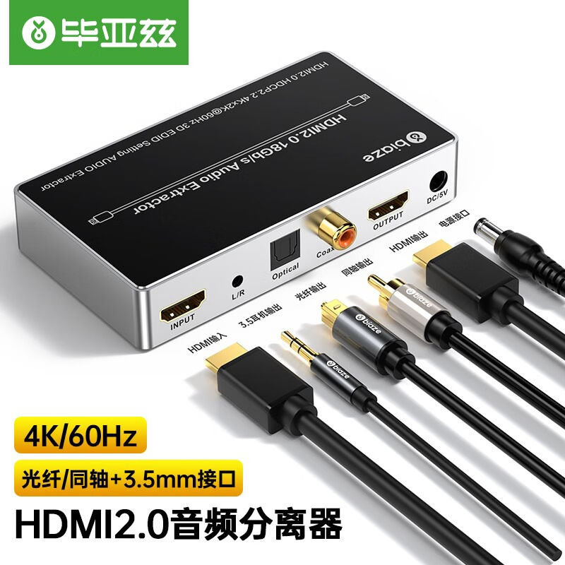 毕亚兹HDMI2.0音频分离器线4K/60HZ高清视频7.1光纤/同轴/3.5mm音