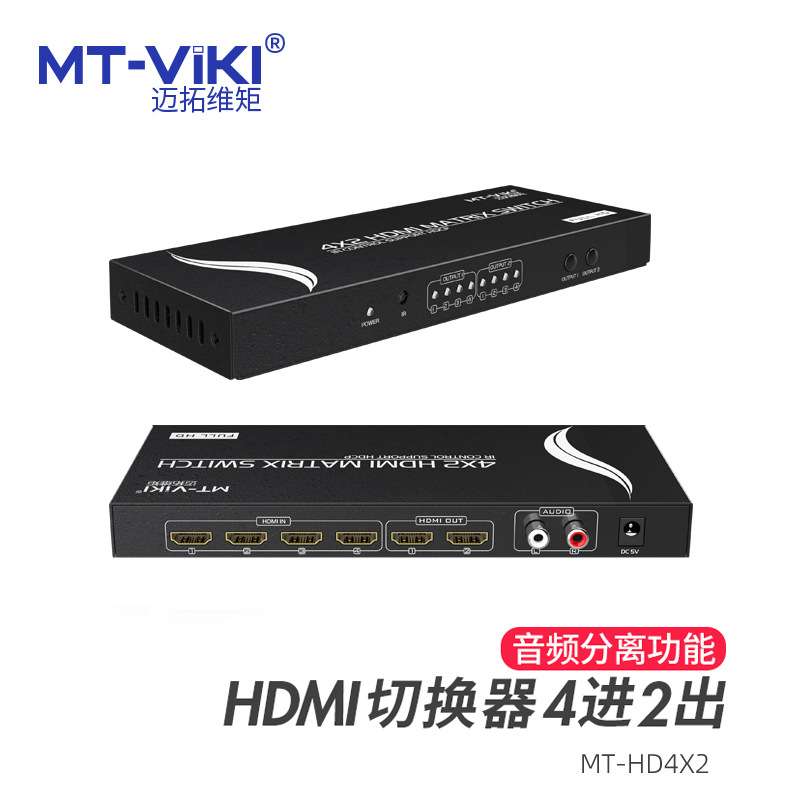 迈拓维矩四进二出HDMI高清视频矩阵切换器音频分离MT-HD4X2