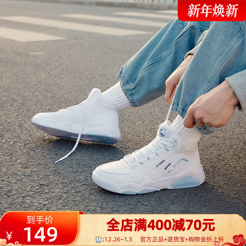 契约4|鸿星尔克板鞋高帮男鞋秋季皮面增高休闲鞋学生百搭运动鞋子