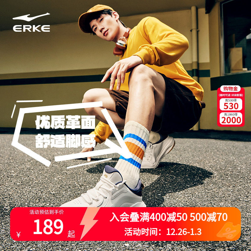 契约4 鸿星尔克板鞋男鞋秋季皮面休闲鞋子学生百搭高帮运动鞋正品