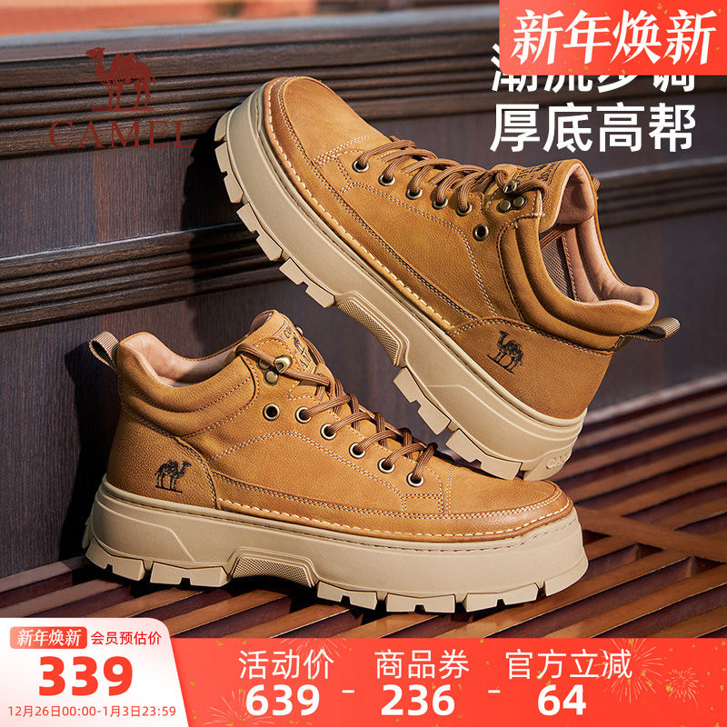 骆驼男鞋高帮鞋秋季新款防滑百搭厚底增高英伦真皮休闲滑板鞋男士