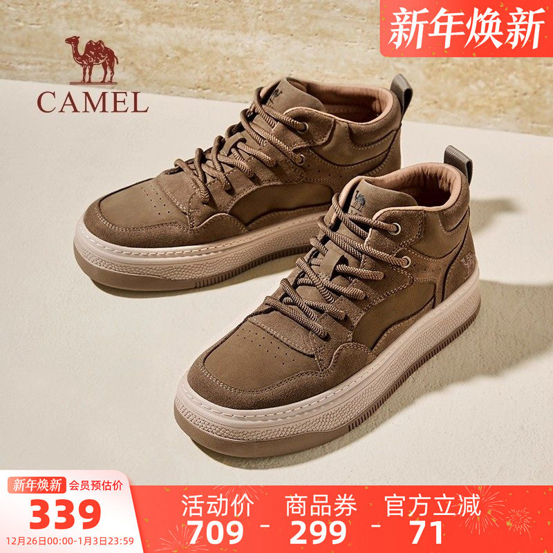 骆驼男鞋高帮鞋2025秋季新款增高厚底耐磨复古时尚百搭休闲板鞋男