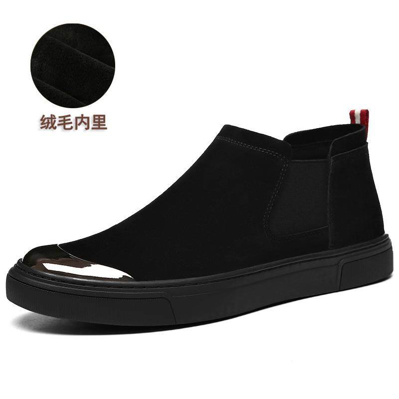 中帮休闲皮鞋韩版秋季男鞋高帮板鞋二棉鞋男潮流男士翻毛皮懒人鞋