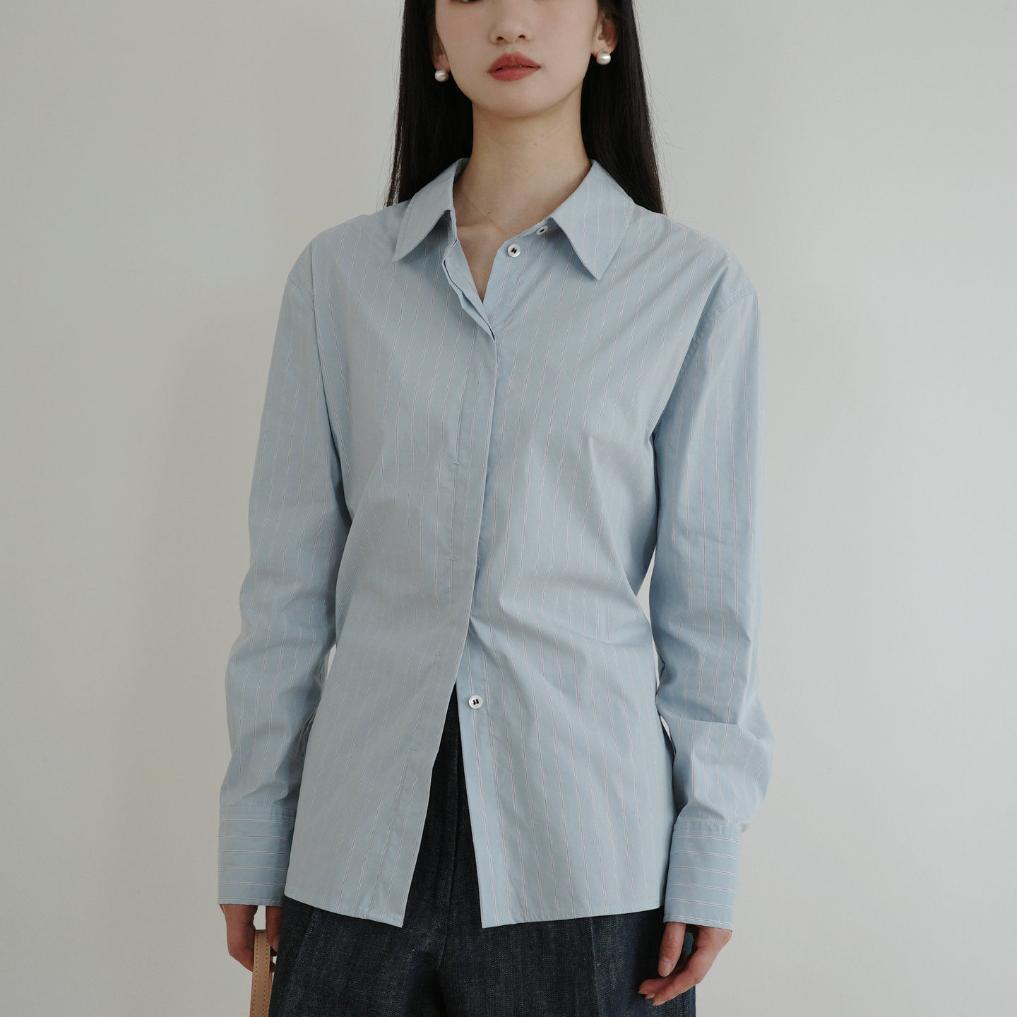 - 白色条纹衬衫女