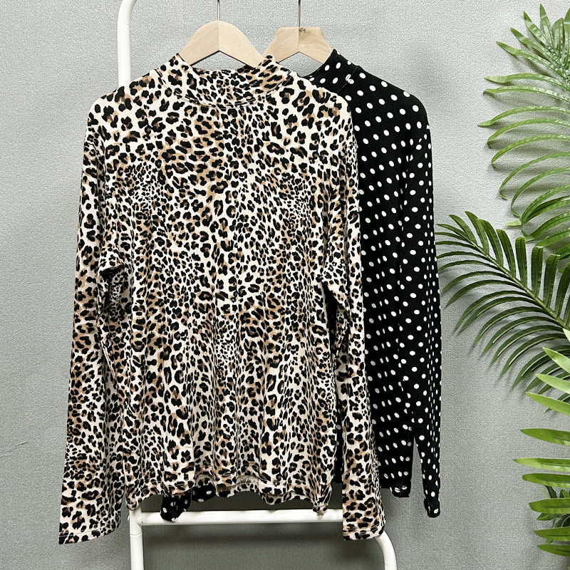 蚕丝加棉半高领打底衫豹纹圆点常规秋冬成人衬衫时尚休闲小衫女装