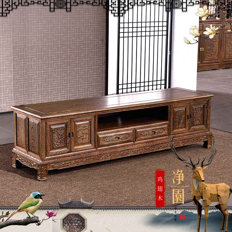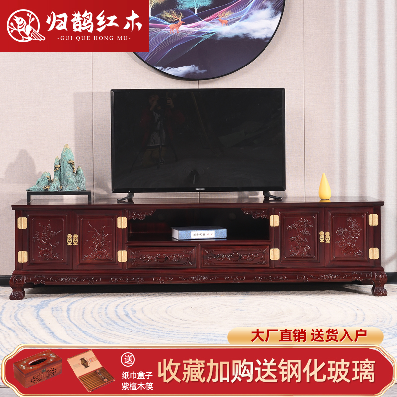 国标红木电视柜印尼黑酸枝红木电视柜阔叶黄檀古典雕花地柜储物柜