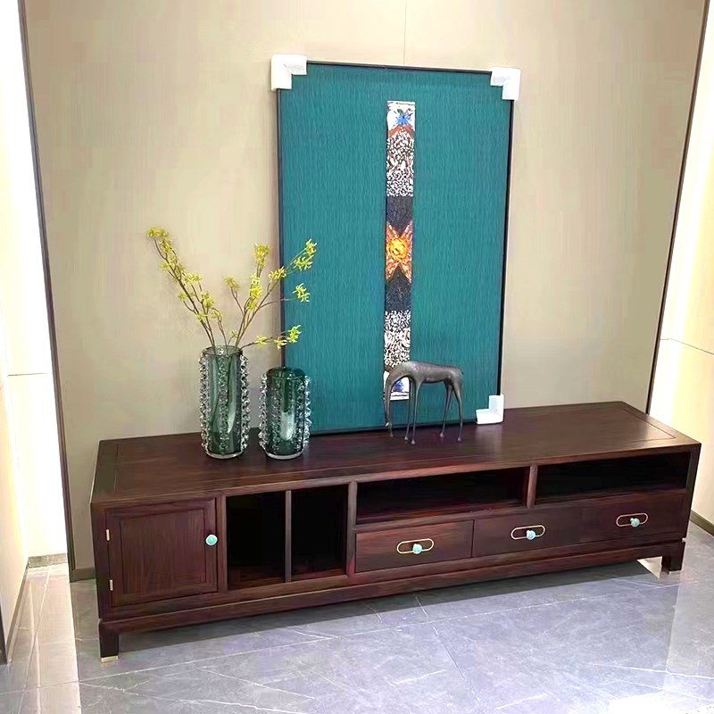 红木电视柜条纹乌木柜客厅新中式全实木影视柜矮柜雕花储物落地柜