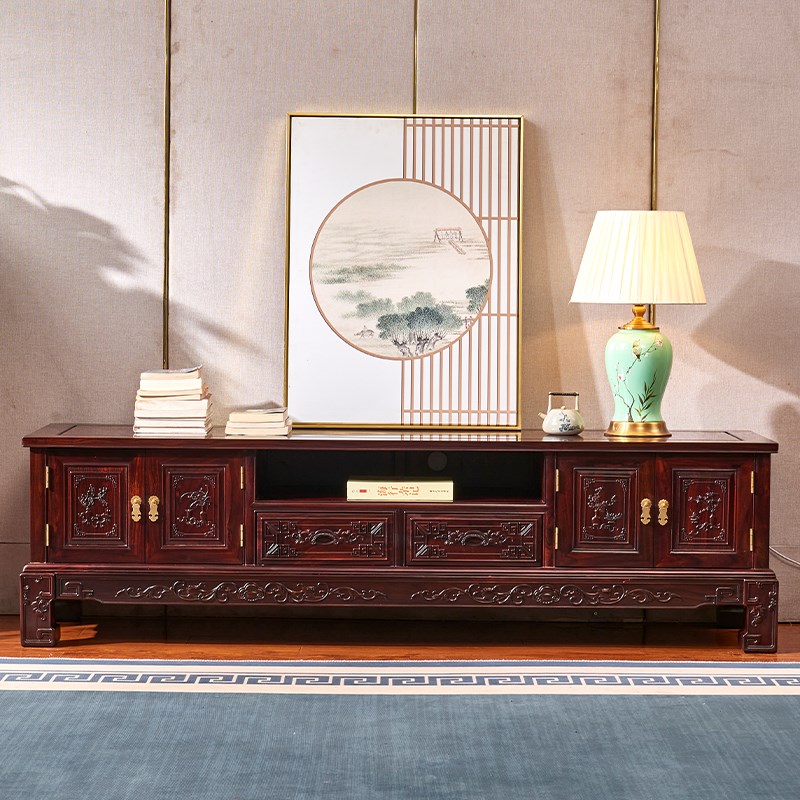 红木电视柜非洲酸枝木新中式实木客厅影视柜矮柜雕花储物地柜组合