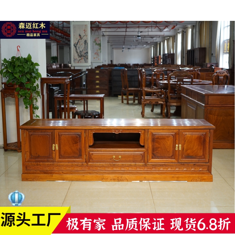 红木电视柜菠萝格原木客厅影视柜明清古典原木实木储物地柜厂直销
