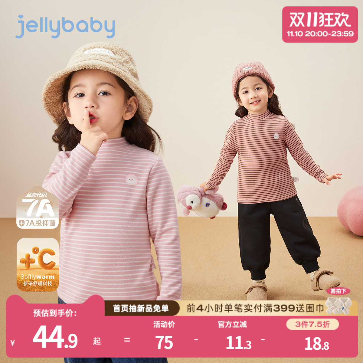 [抗菌远红外]长袖t恤儿童高领条纹打底衫女小童秋季男童秋冬上衣