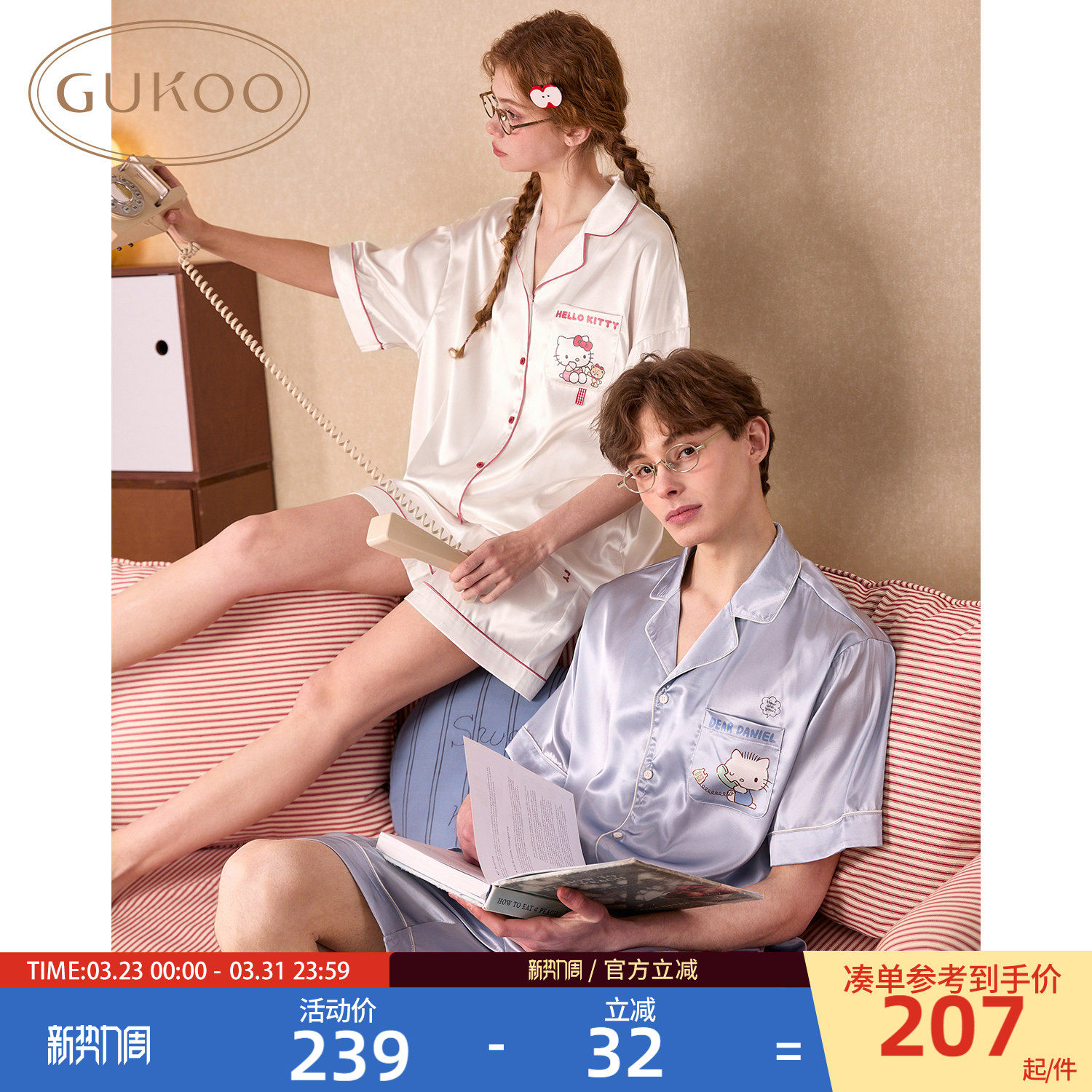 果壳情侣睡衣夏女士新款睡衣HelloKitty凉感冰丝男士家居服套装B