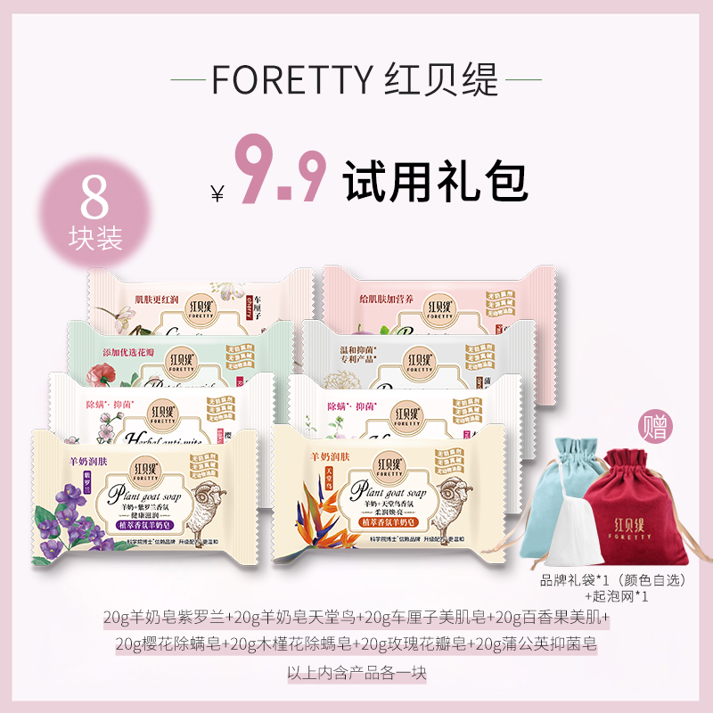【8块香皂】红贝缇羊奶皂车厘子百香果精油沐浴除螨香皂小样8块