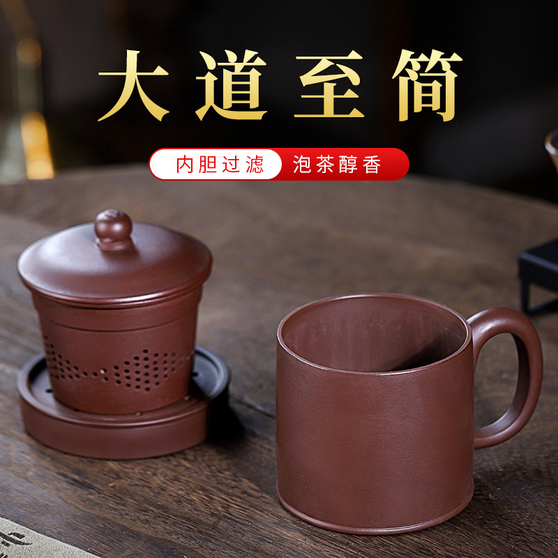 宜兴紫砂杯男士茶杯主人杯陶瓷带盖杯家用办公杯子过滤单个泡茶杯