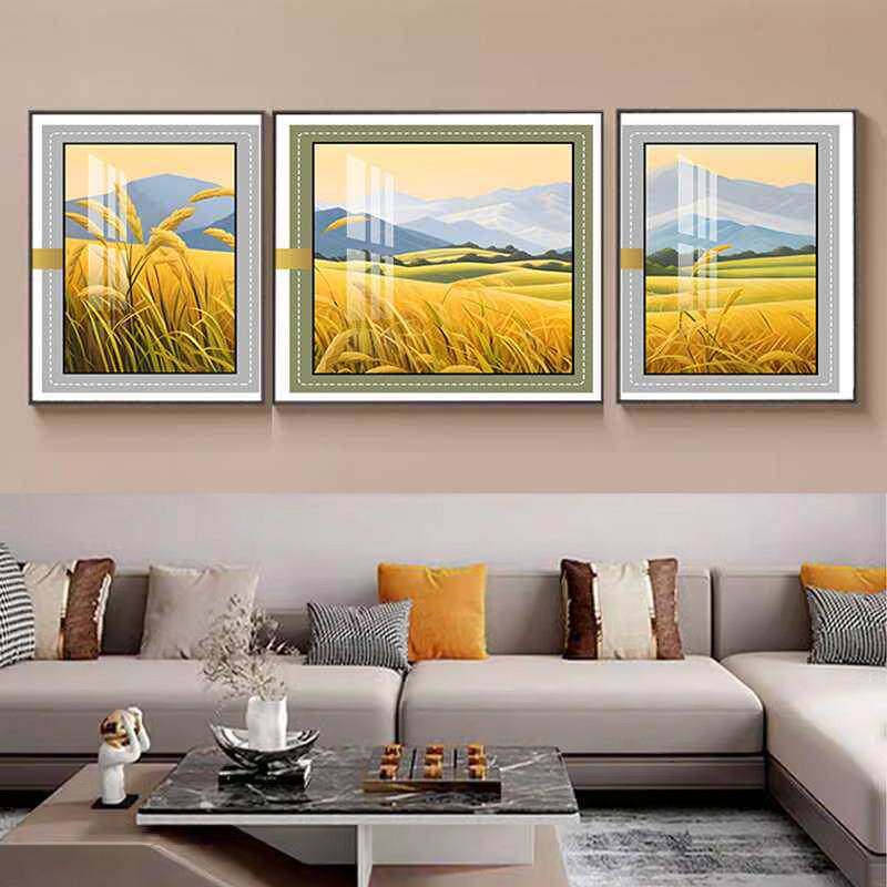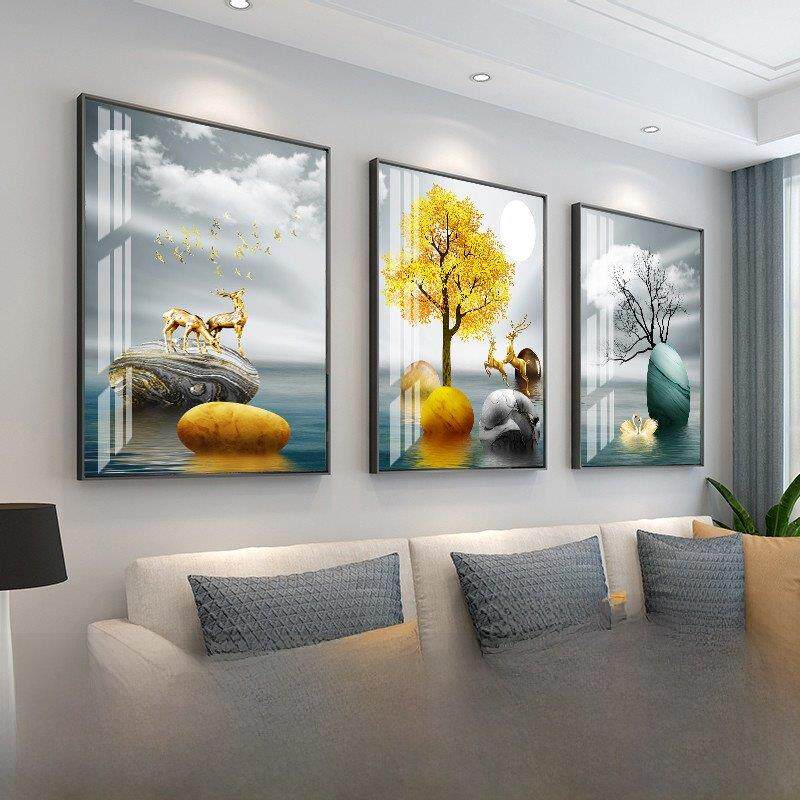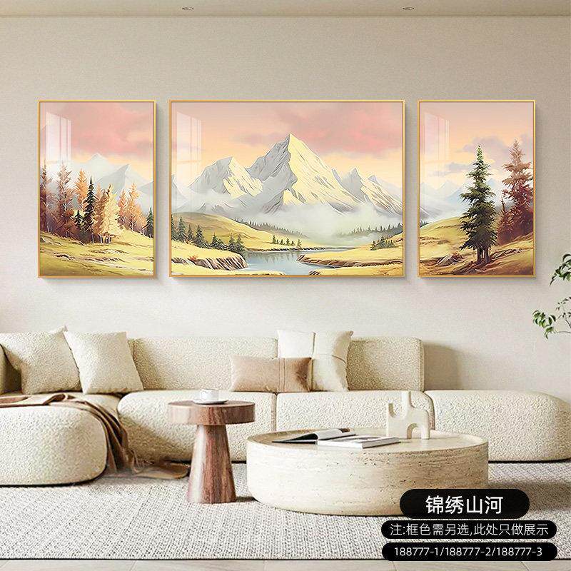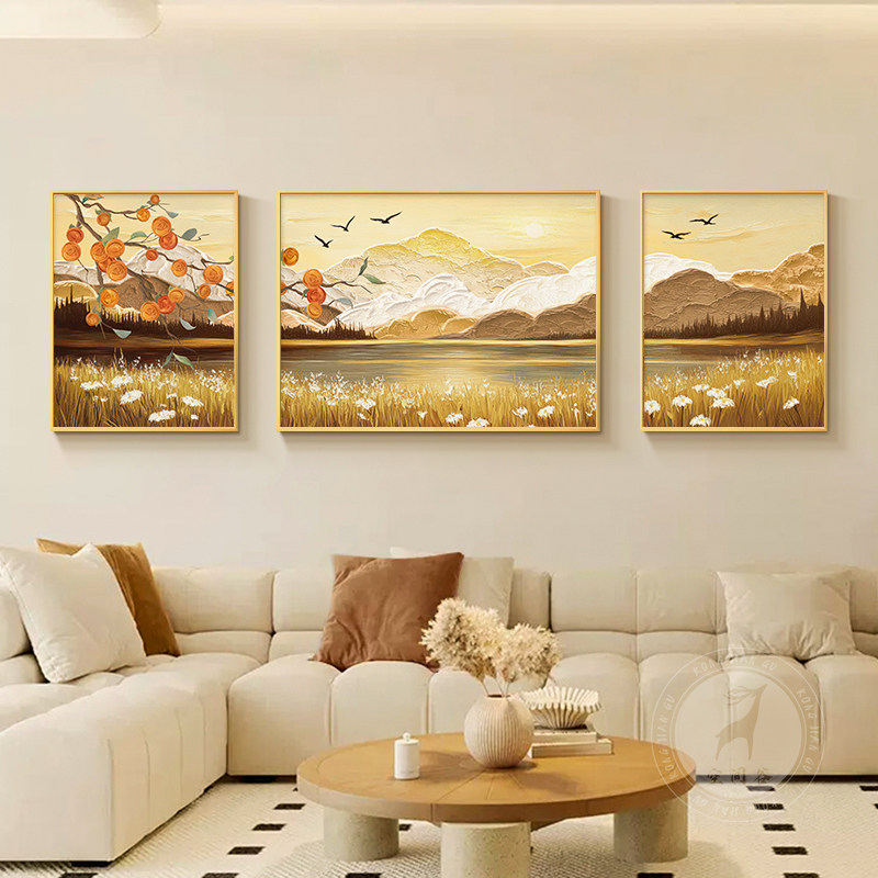 客厅装饰画风景壁画现代平易近人豪华典雅三联画寓意好沙发背景墙