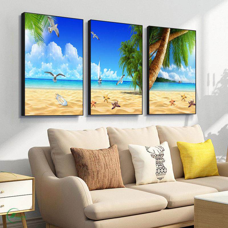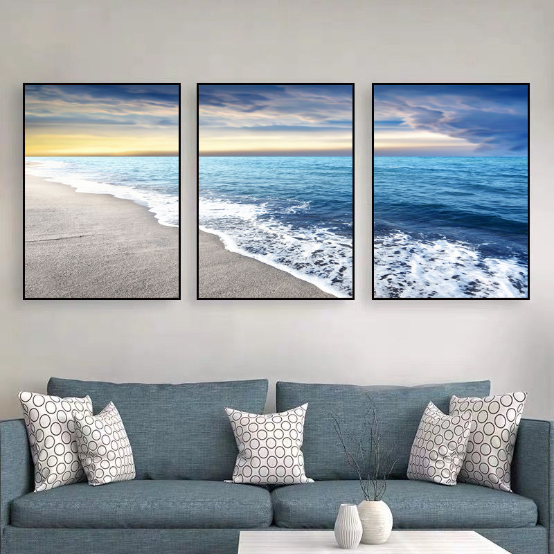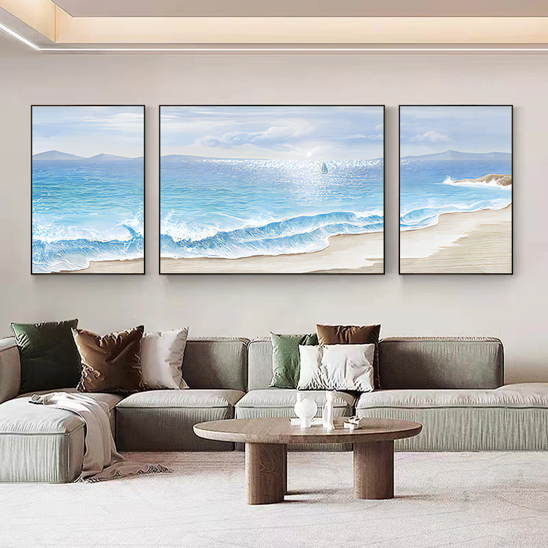 客厅装饰画现代简约沙发背景壁画挂画海景墙画海边风景大海三联画