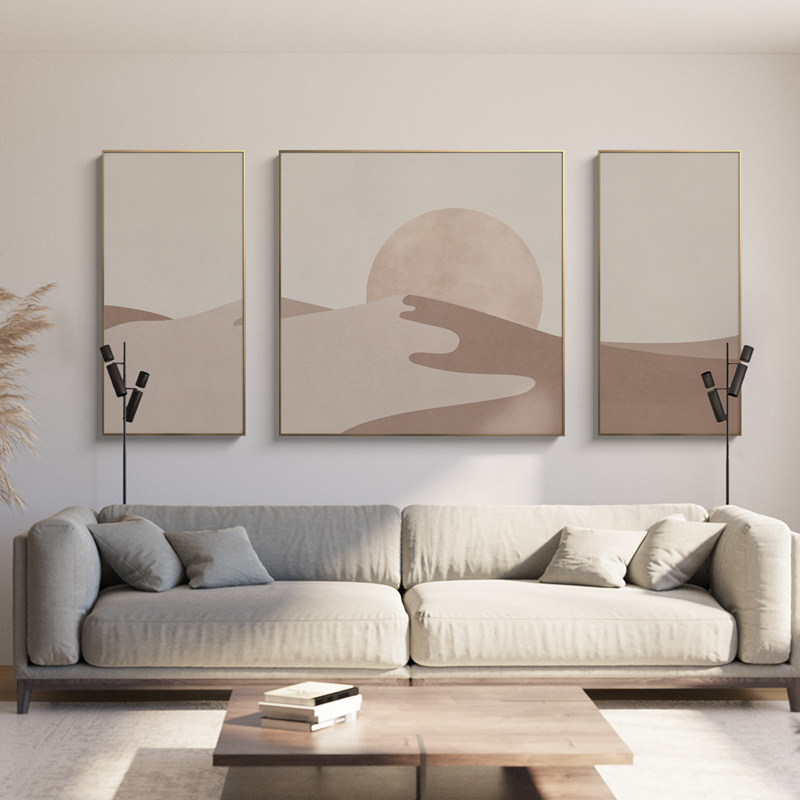 奶油风格客厅装饰画现代极简主义风景三联画壁画斯堪的纳维亚无障