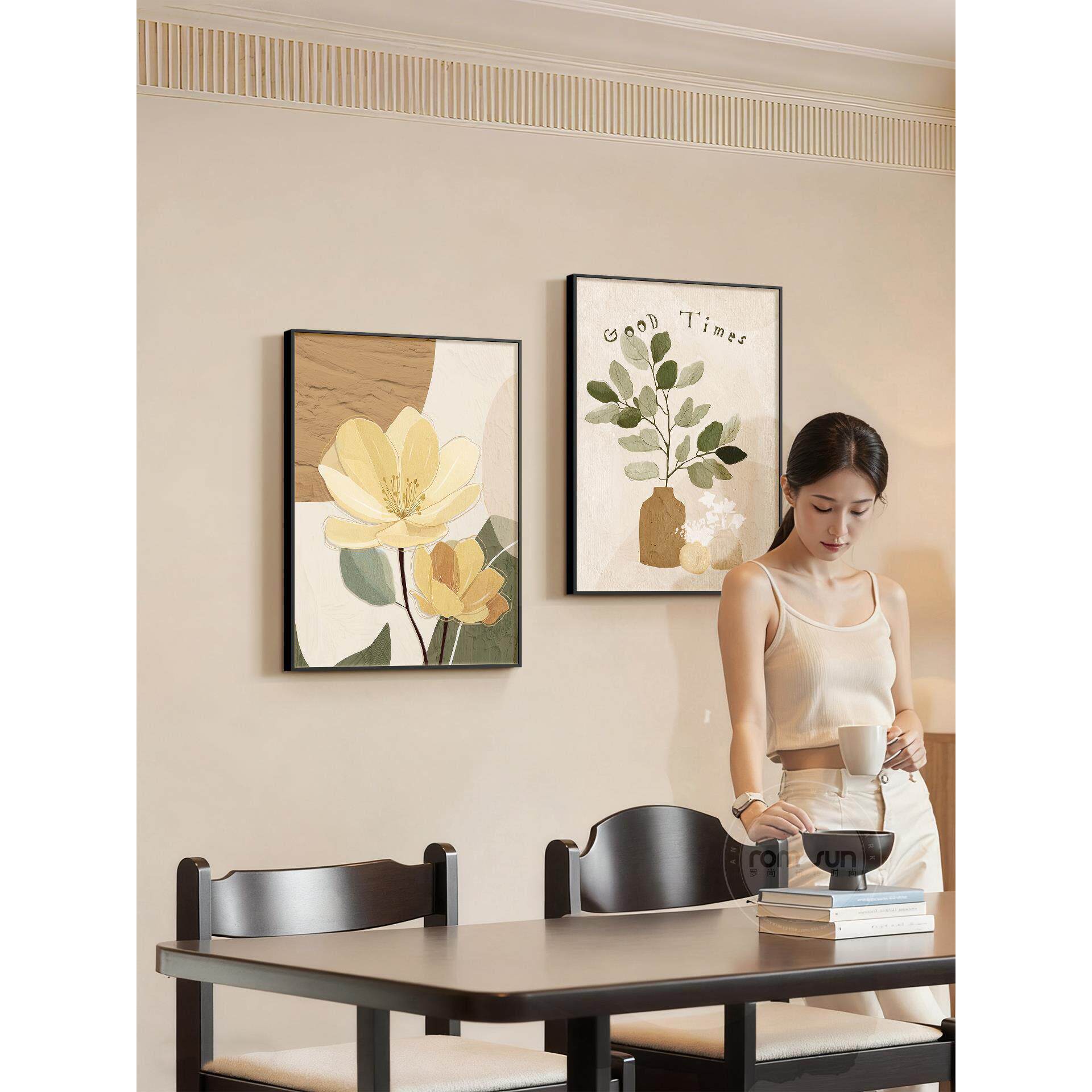 现代简约餐厅装饰画风景花卉客厅背景墙三联画高级感饭厅餐桌挂画