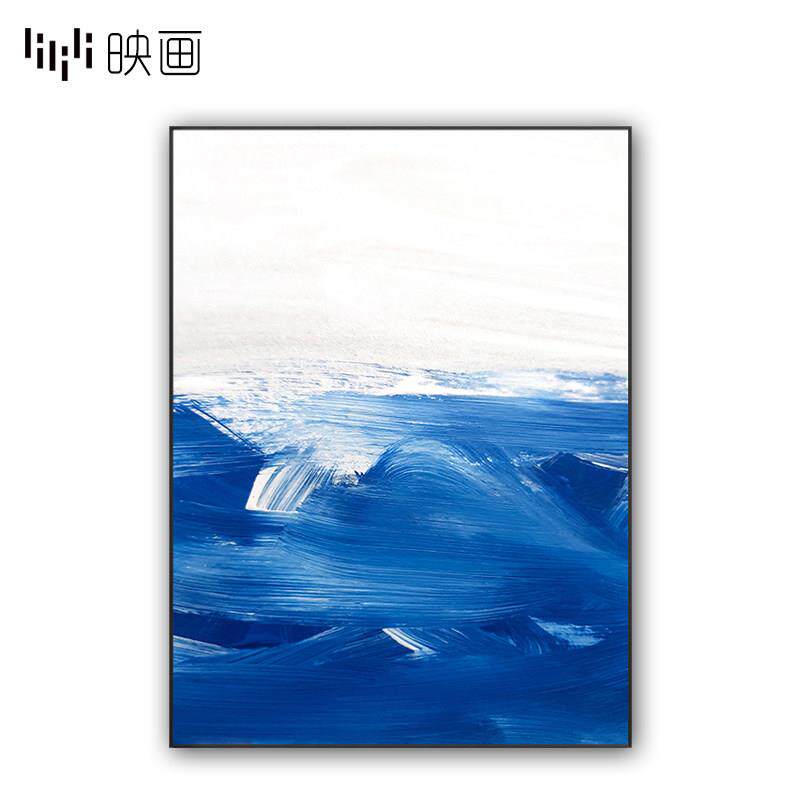 客厅装饰画背景墙壁挂画酒店餐厅样板房蓝色画抽象山水风景三联画