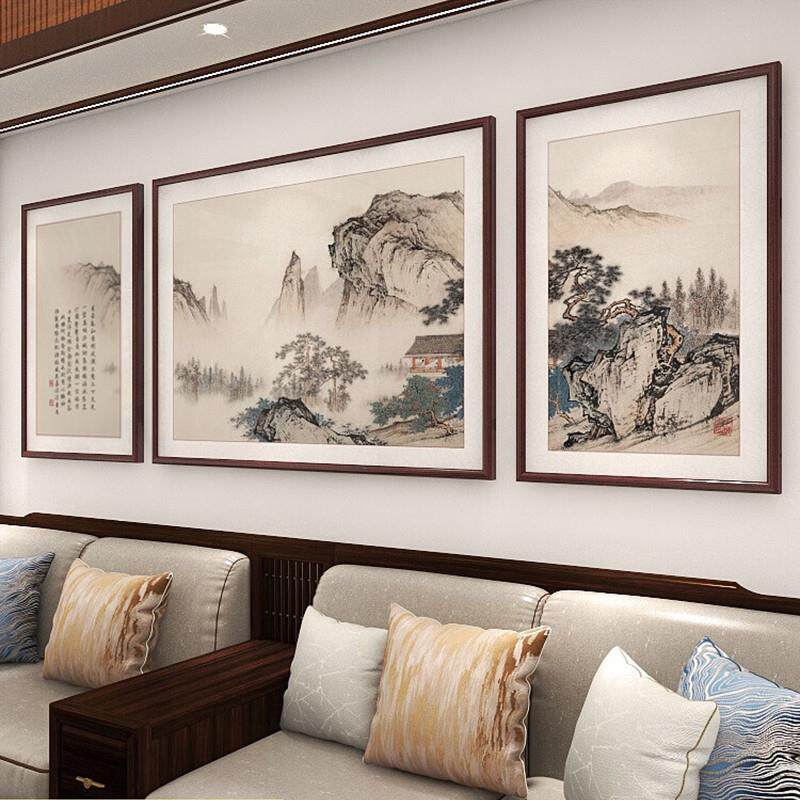 新中式客厅装饰画沙发背景墙挂画三联画办公室风景山水画书房壁画