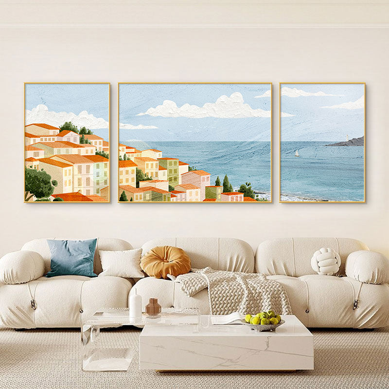 海景客厅装饰画现代简约壁画沙发背景简欧挂画风景墙面大气三联画