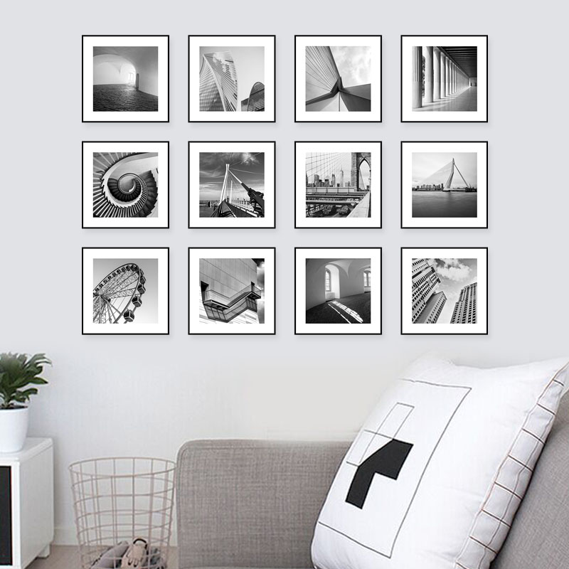 黑白挂画艺术装饰画现代简约走廊过道壁画办公室客厅工业风建筑画