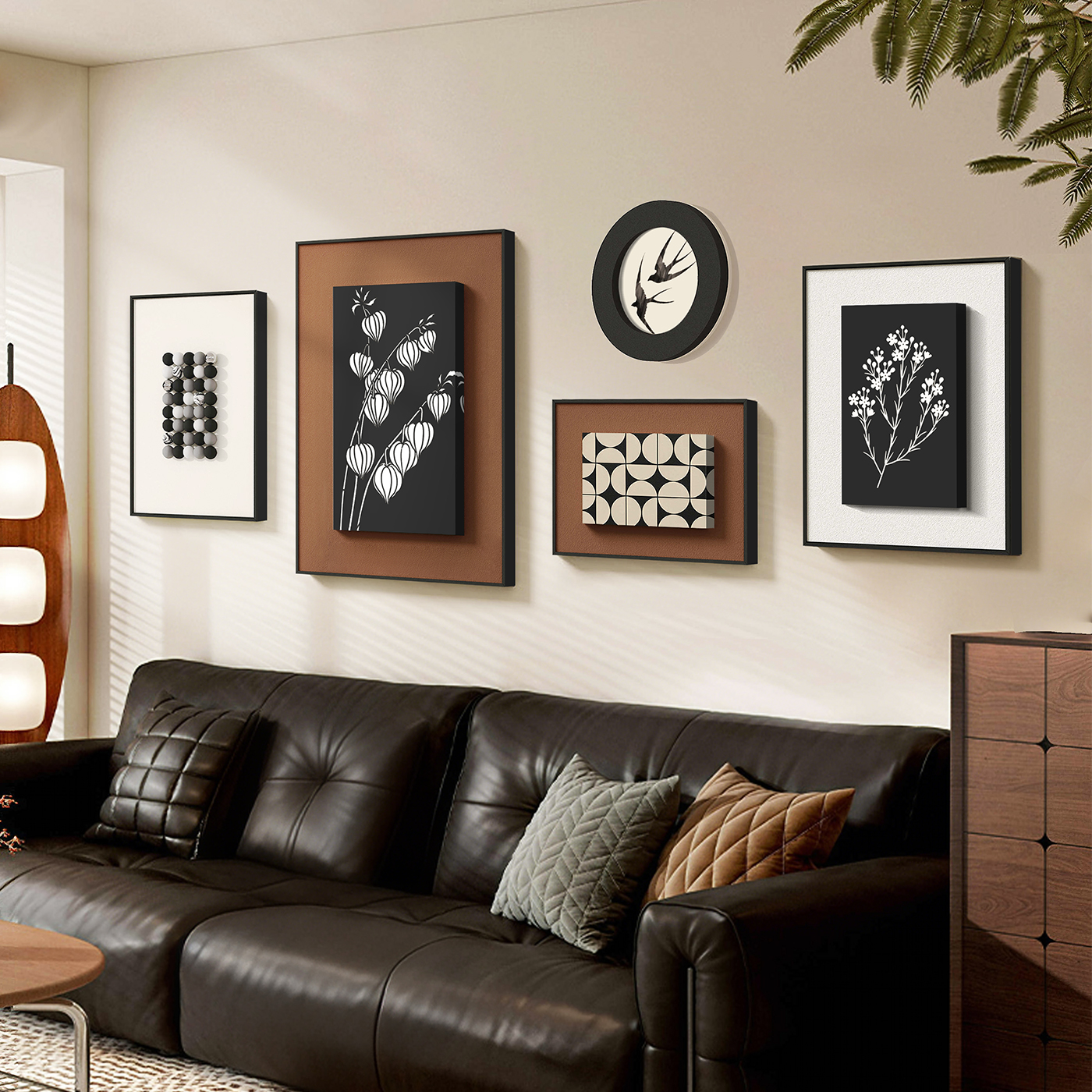 中古侘寂风装饰画抽象客厅玄关北欧轻奢民宿高级组合艺术黑白挂画