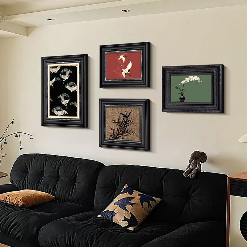 空间》法式中古风客厅装饰画 画饭厅玄关覆古抽象黑白挂画 画诧寂